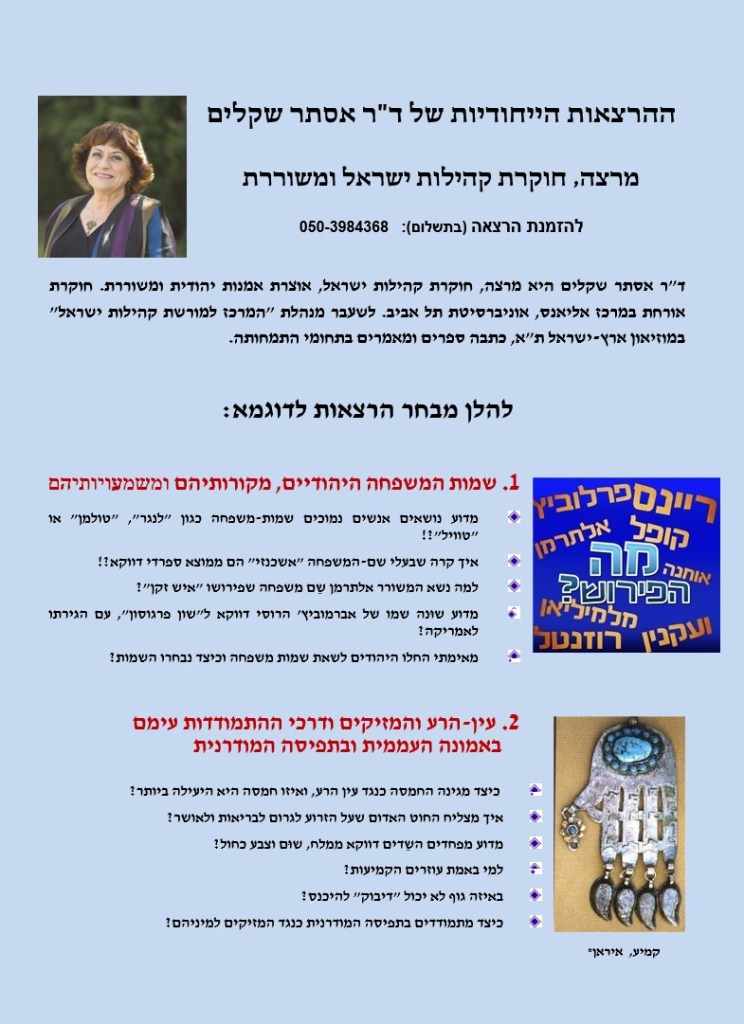 רוצה לדעת עוד על המרצה ד"ר אסתר שקלים, על תכני ההרצאות וקהל היעד?