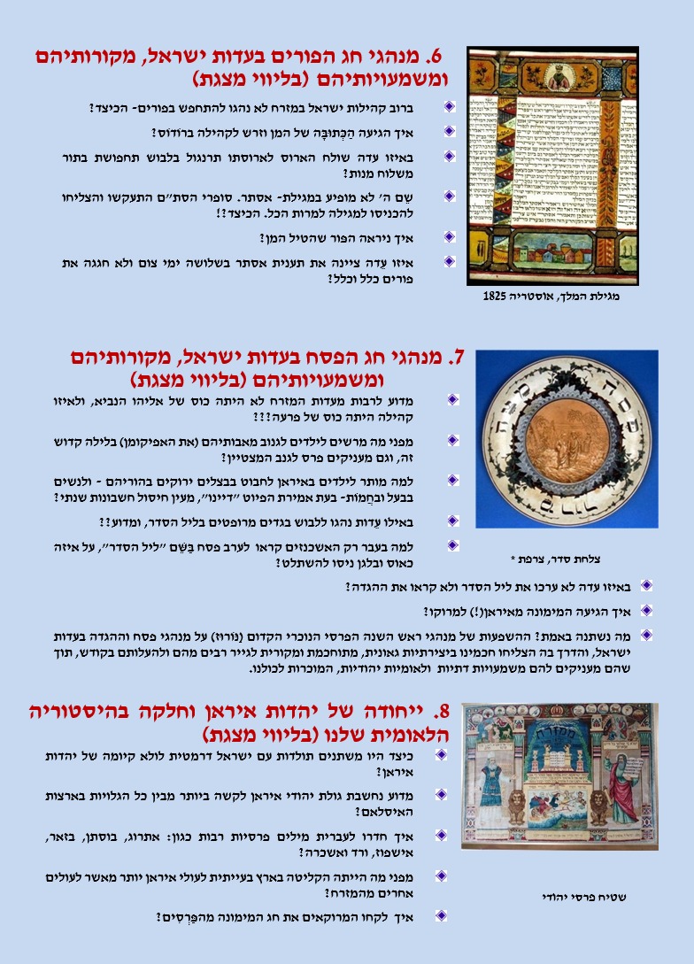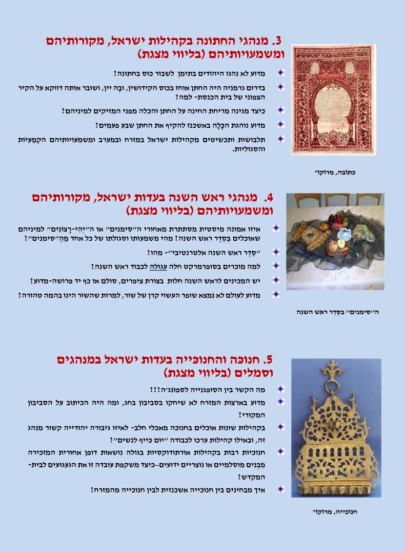 כל התשובות על שאלות אלו שמעסיקות רבים מאיתנו נמצאות בהרצאות מרתקות בנושא פולקלור ומנהגים בעדות ישראל באשכנז, ספרד והמזרח.