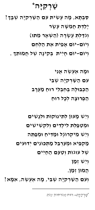 - שקלים אסתר, שרקיה– ספר שירים, כינרת זמורה ביתן, 2006